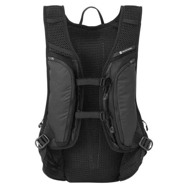 Two off-centre Montane Click and Go chest harness straps for security.