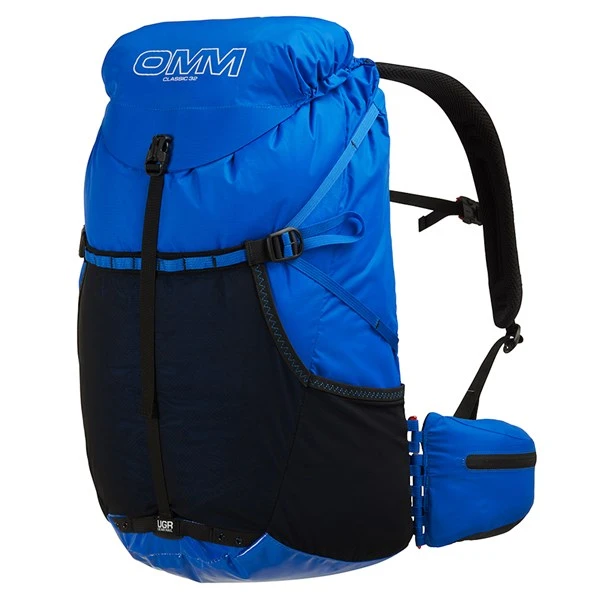 One way to cut weight is to make components multi-functional. Experienced competitors don’t see an empty rucksack in their tent but instead extra warmth for feet or padding as a pillow. OMM does the same with its design so the Classic includes the Duomat fold out sleep mat which is your back padding and minimal sleep insulation (but also a great seat for a picnic or when you are waiting for a helicopter pickup from a glacier). The removeable waist belt can be used on its own without the pack to carry your essentials on a Fell race or 5km and the aluminium pegs that attach it all together are two less you need to carry to put up your tent (they also double as bottle openers for that all important post-race recovery beer). Or remove them all and be floaty light!